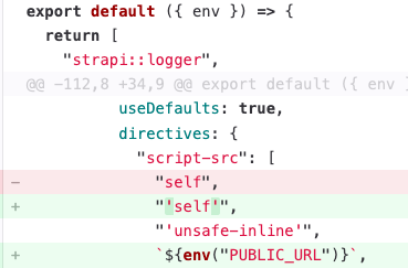// ❌ 錯誤:缺少引號 'script-src': ['self', 'unsafe-inline'] // ✅ 正確:必須加引號 'script-src': ["'self'", "'unsafe-inline'"]設定沒有生效
