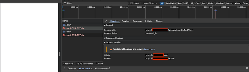 # GraphQL 查詢正常 $ curl -X POST https://cms.example.com/graphql \ -H "Content-Type: application/json" \ -d '{"query": "{ articles { title } }"}' {"data":{"articles":[{"title":"Test Article"}]}} ✅ # REST API 也正常 $ curl https://cms.example.com/api/articles {"data":[{"id":1,"attributes":{"title":"Test Article"}}]} ✅但瀏覽器打開後台是空白的